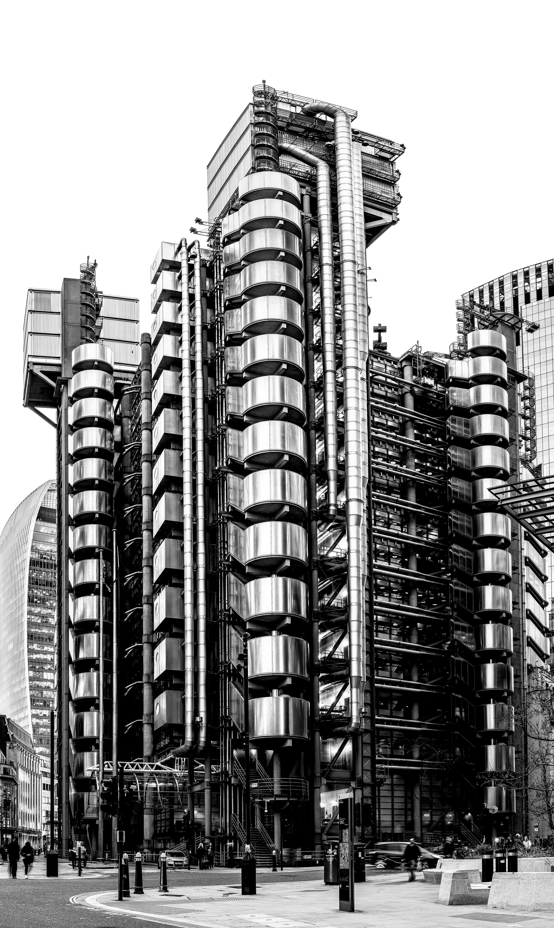 The Lloyds of London Building was designed by Architect Richard Rogers. Completed in 1986, the Lloyd’s building introduced a high-tech architectural style to London’s medieval financial district, a design approach previously seen in the Centre Pompidou in Paris.