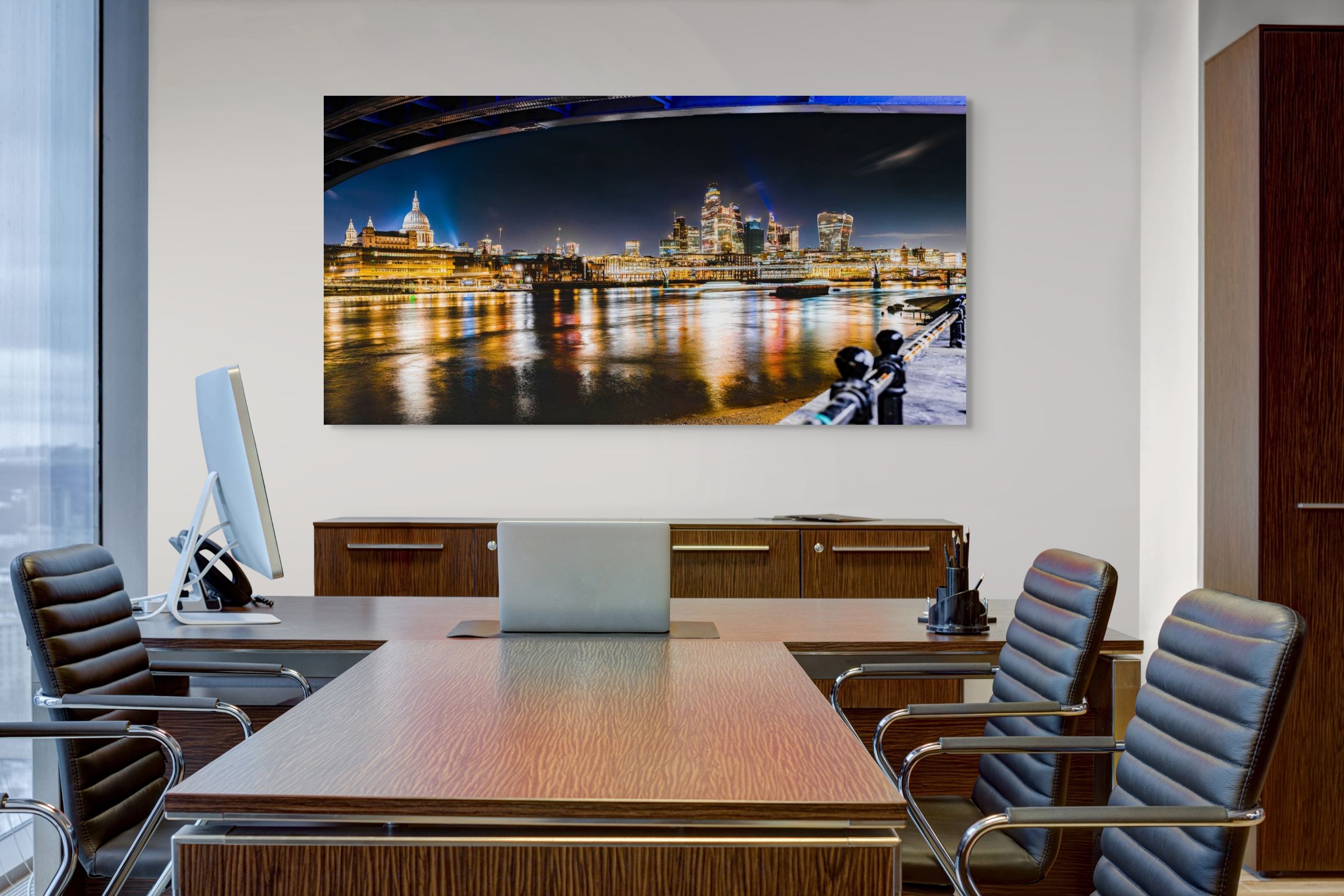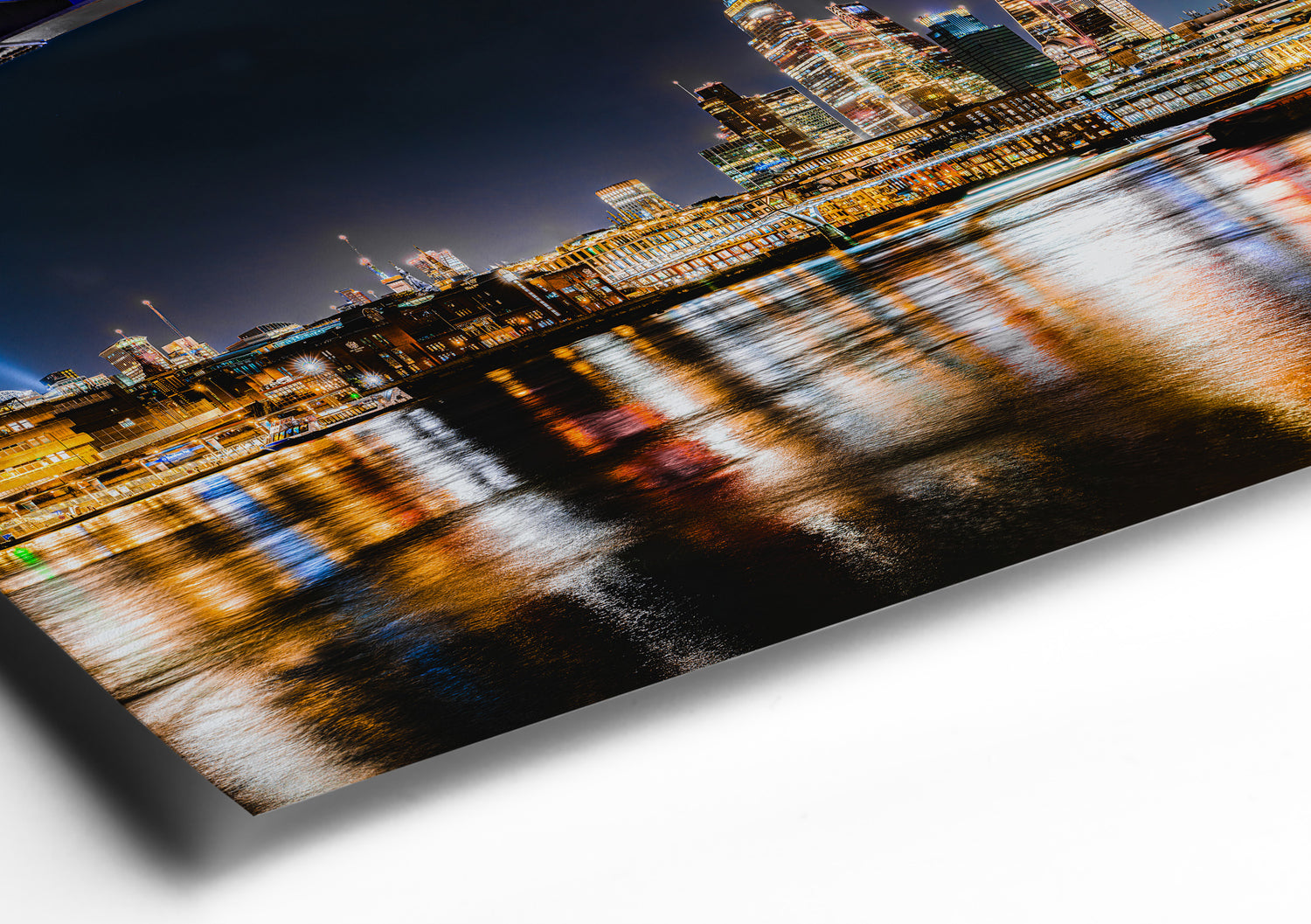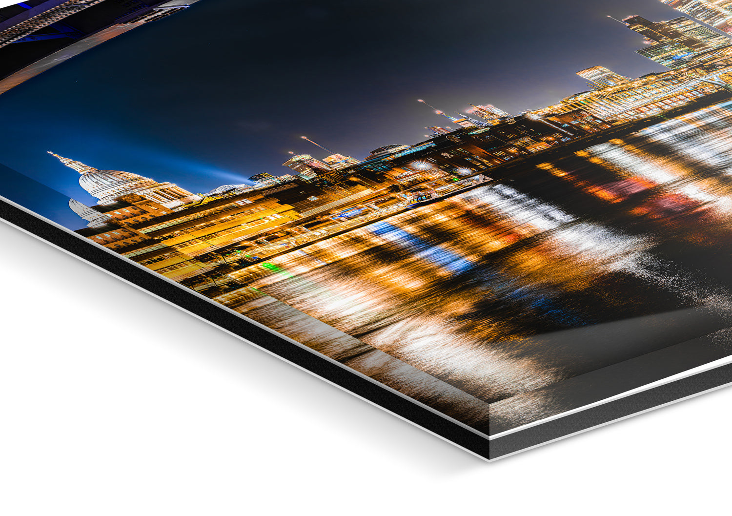 Blackfriars Bridge provided a beautifully framed arch while exposing some of the most well-known landmarks of London and amazing, colorful light reflections on the River Thames. The resulting final photo was created from multiple images stitched together to provide a wide panoramic photo showing St. Pauls Cathedral, the glass skyscrapers of the City of London, and bright light reflections on the RIver Thames.