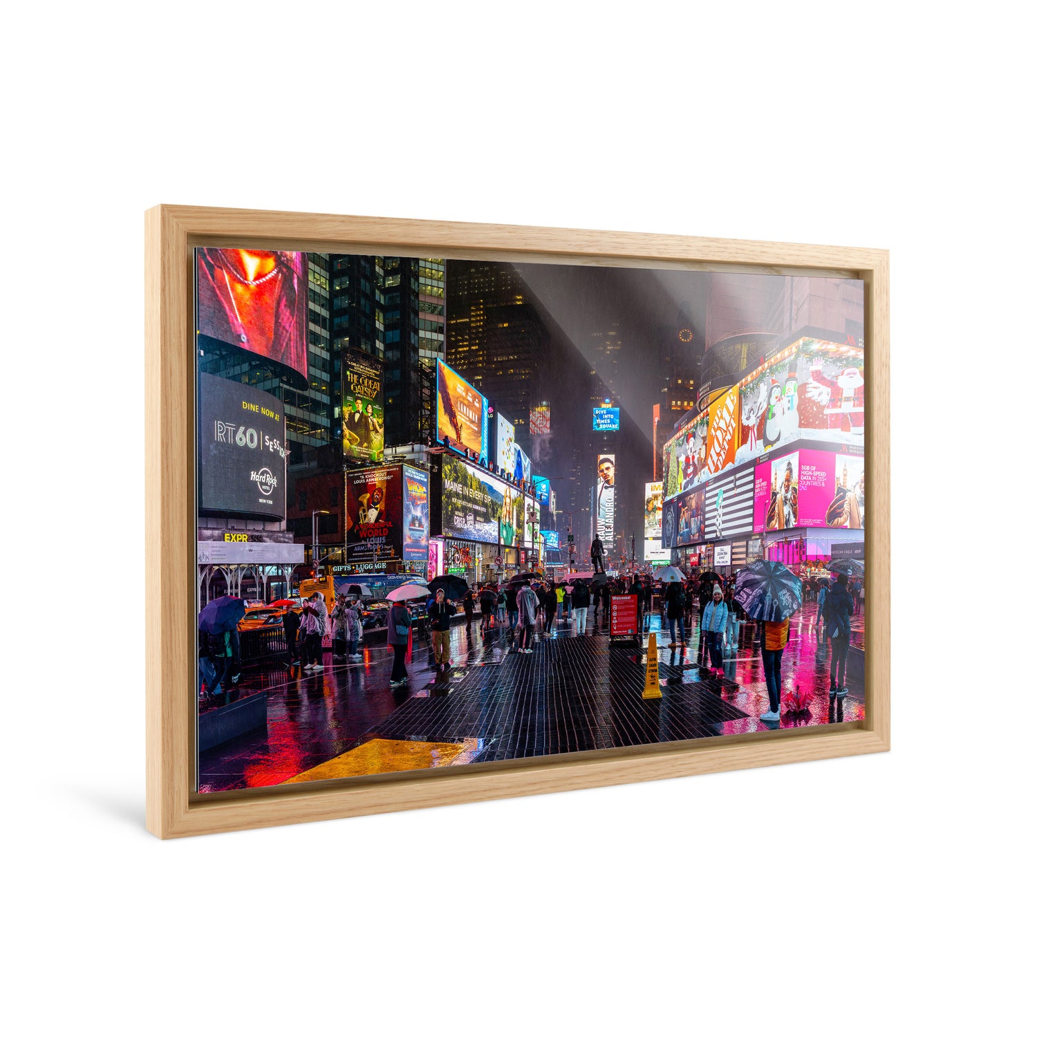 A gap between the image and the solid wood frame creates the impression the picture is levitating