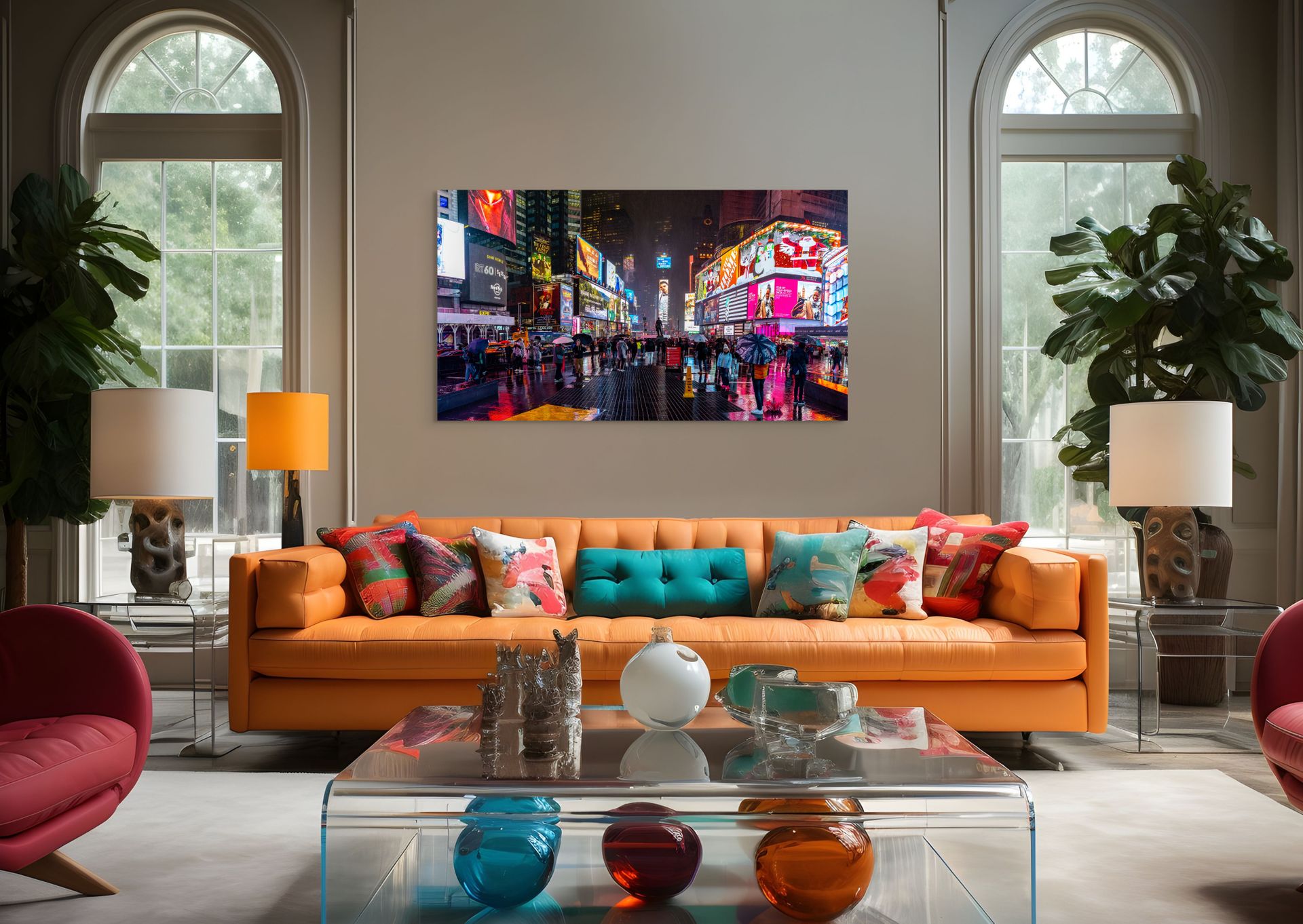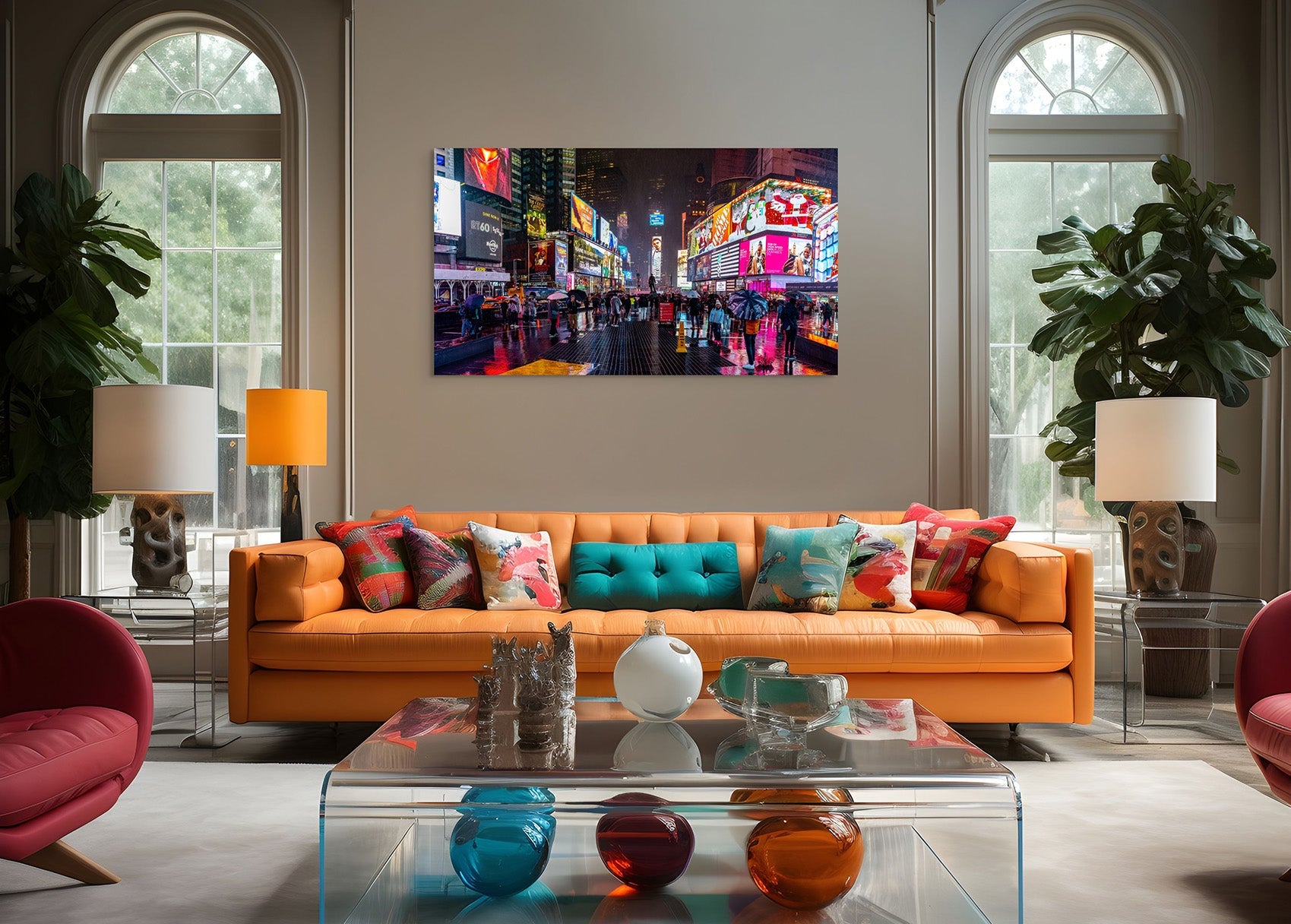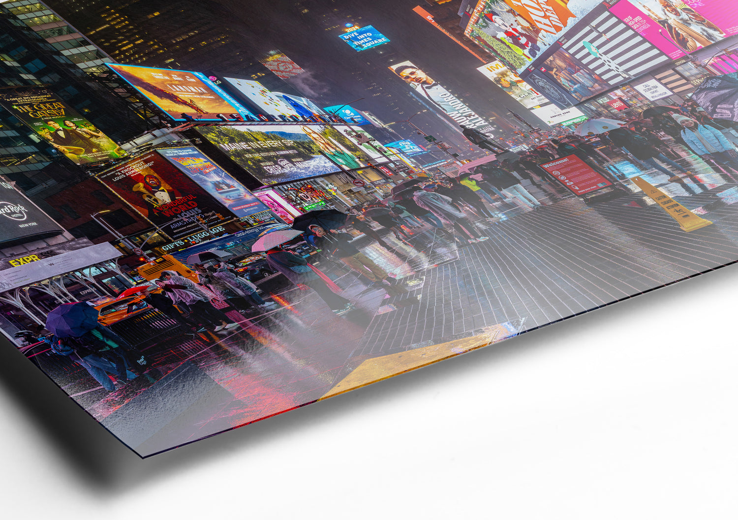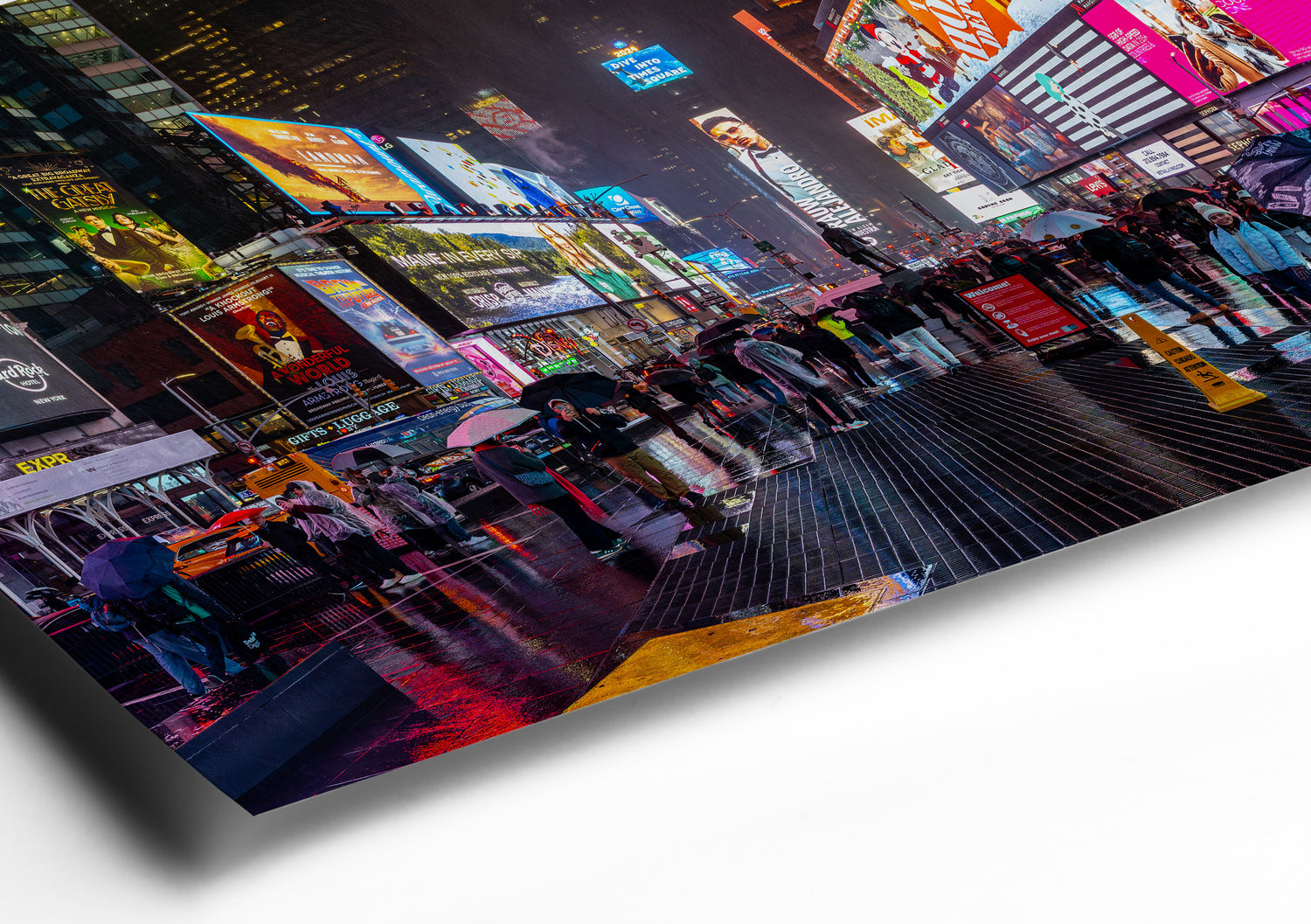 Times Square in New York City is always busy and colorful, and even more so at night when the abundance of color is everywhere. This photo of Times Square at night, and in the rain, consists of multiple images combined as a high-resolution image, and taken at night in the rain. The resulting final image looks more like a painting than a photograph.