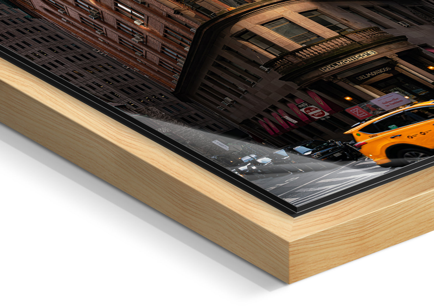 A gap between the image and the solid wood frame creates the impression the picture is levitating