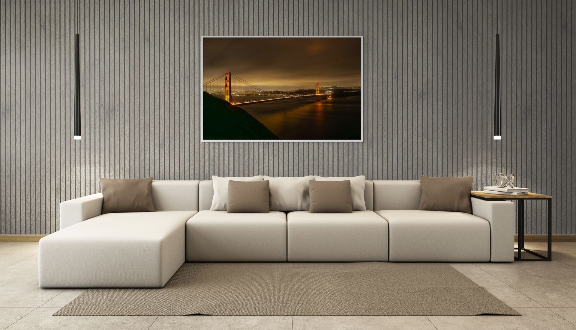 A gap between the image and the solid wood frame creates the impression the picture is levitating