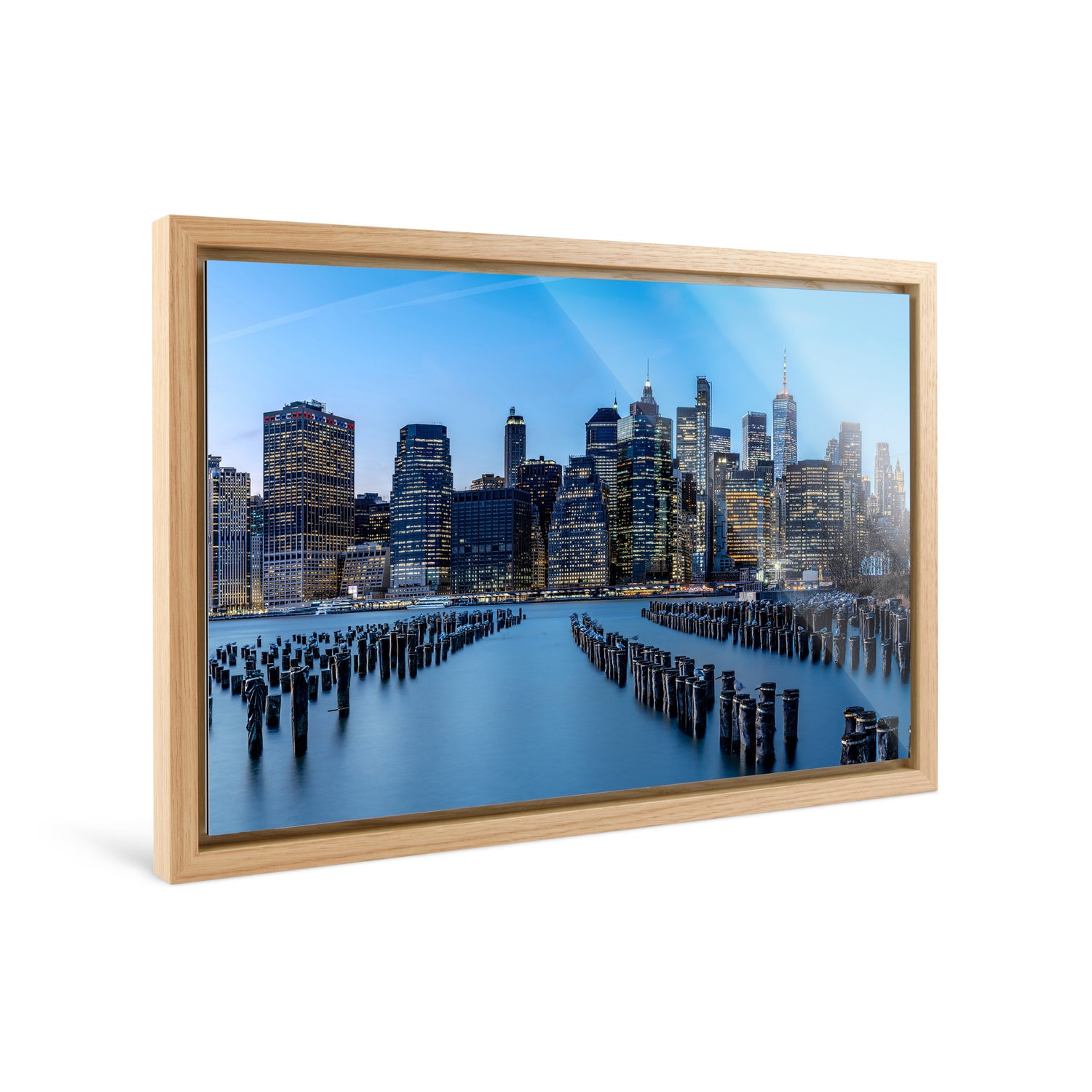 A gap between the image and the solid wood frame creates the impression the picture is levitating