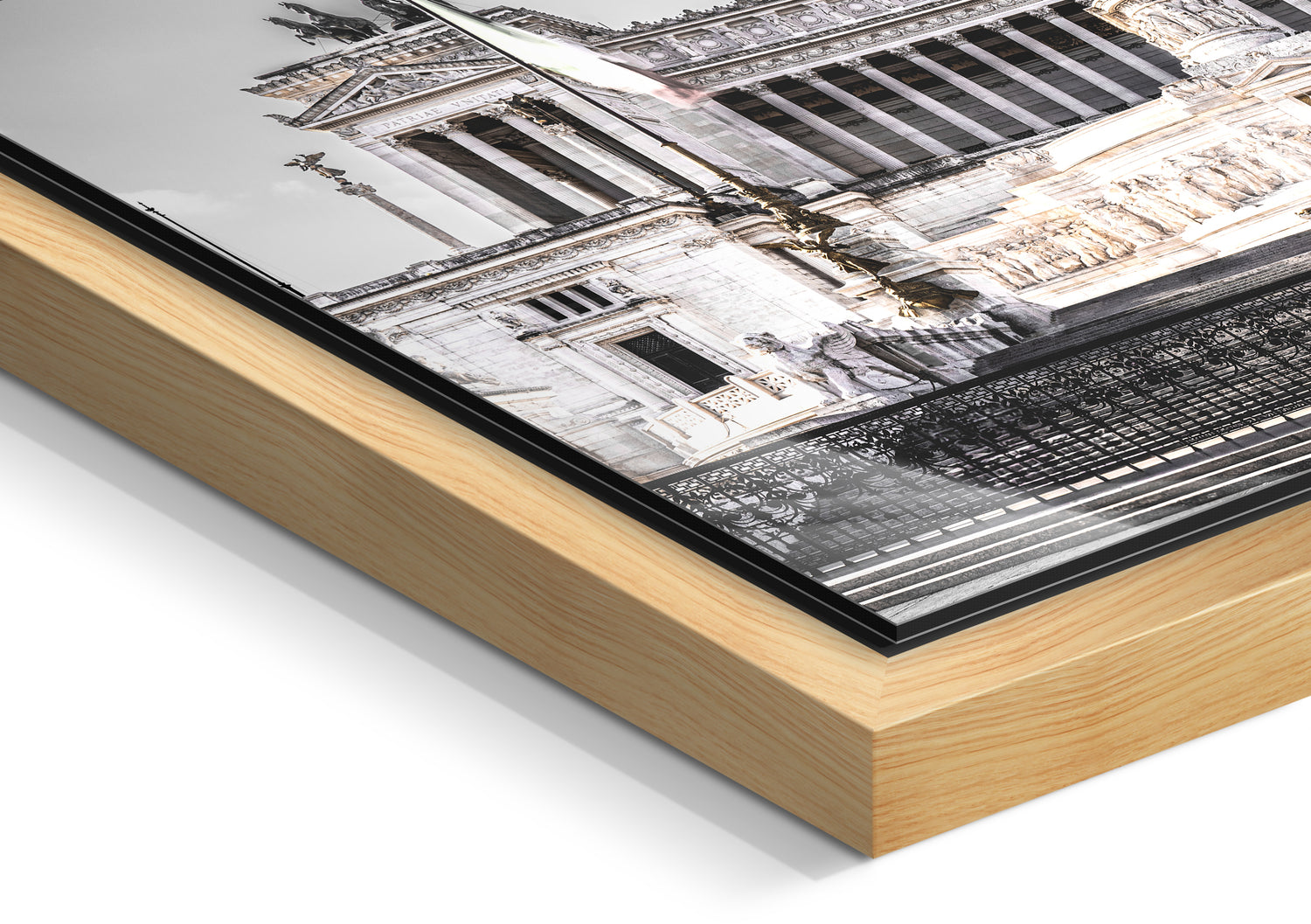 A gap between the image and the solid wood frame creates the impression the picture is levitating