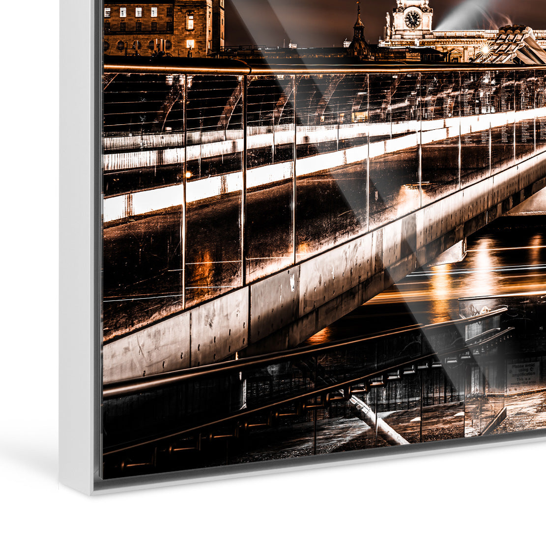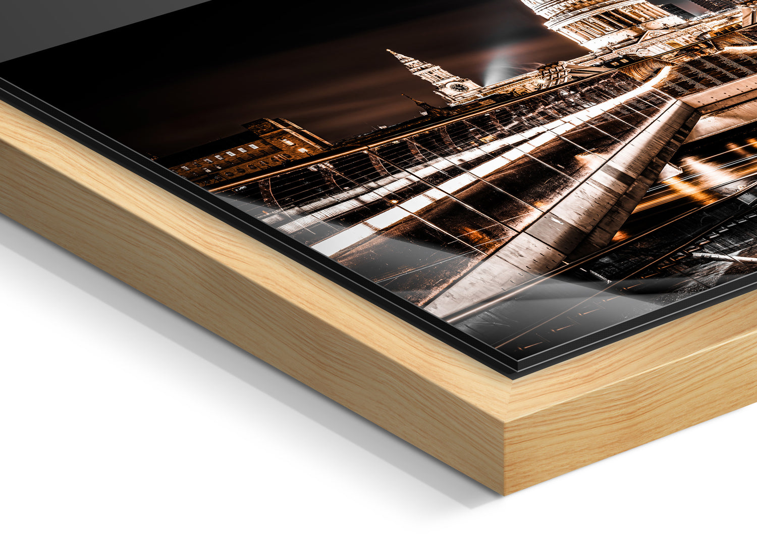 A gap between the image and the solid wood frame creates the impression the picture is levitating
