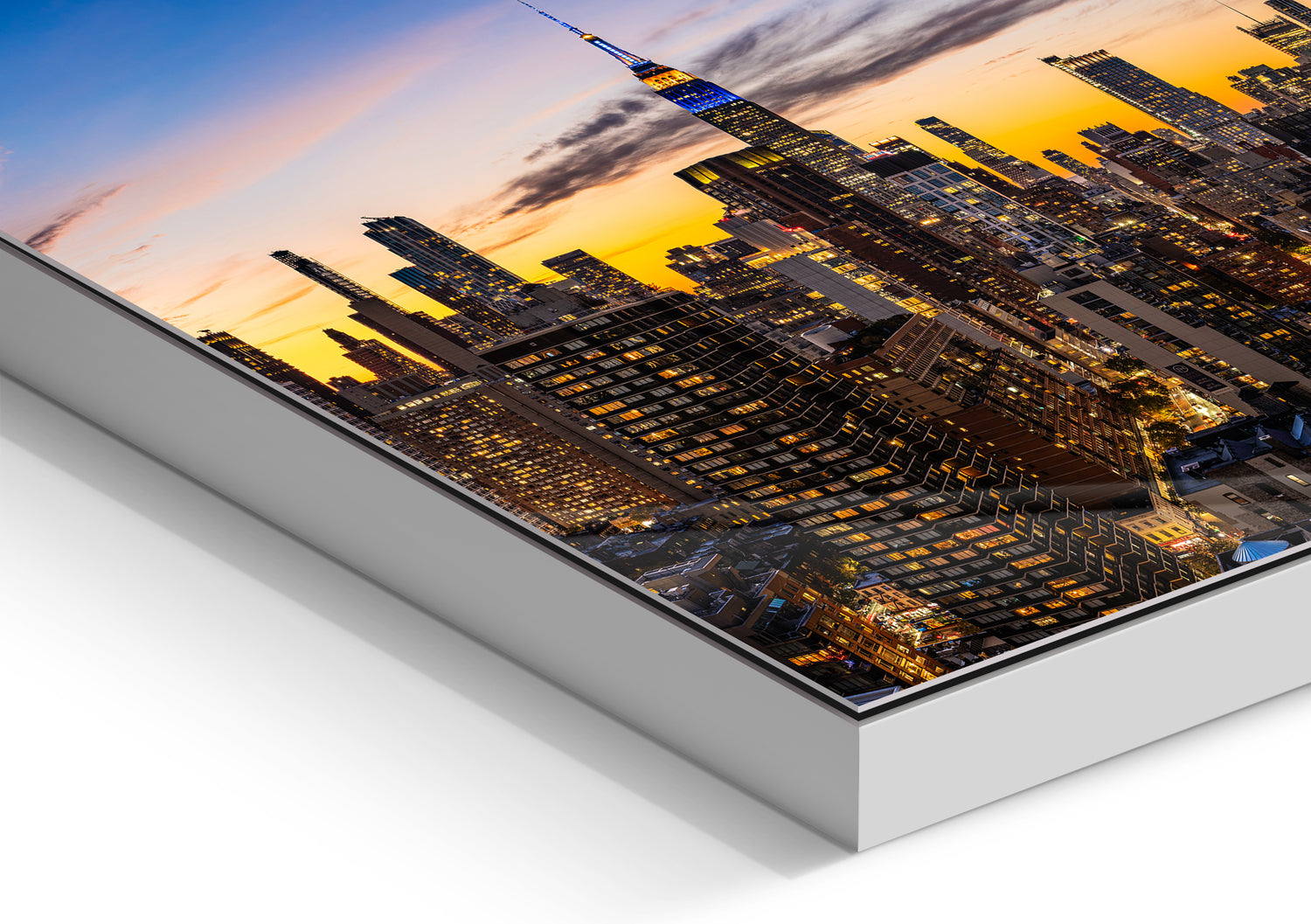 - An Aluminum ArtBox frame made of satin-finished aluminum that turns your photo into a gallery-quality object.