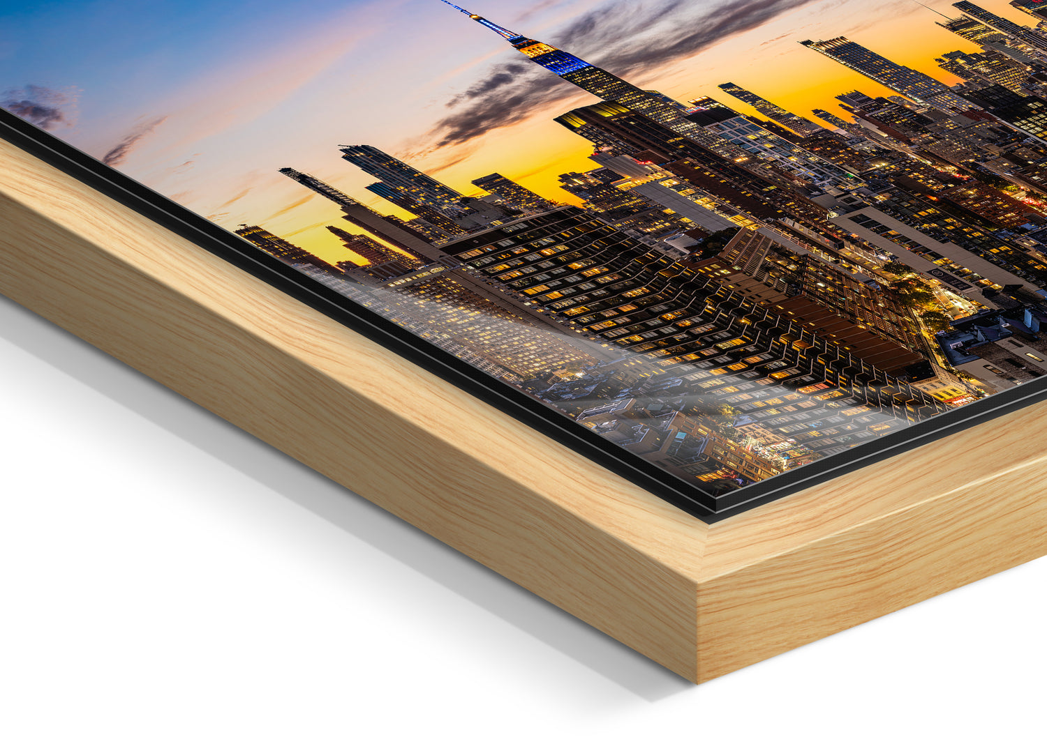 A gap between the image and the solid wood frame creates the impression the picture is levitating