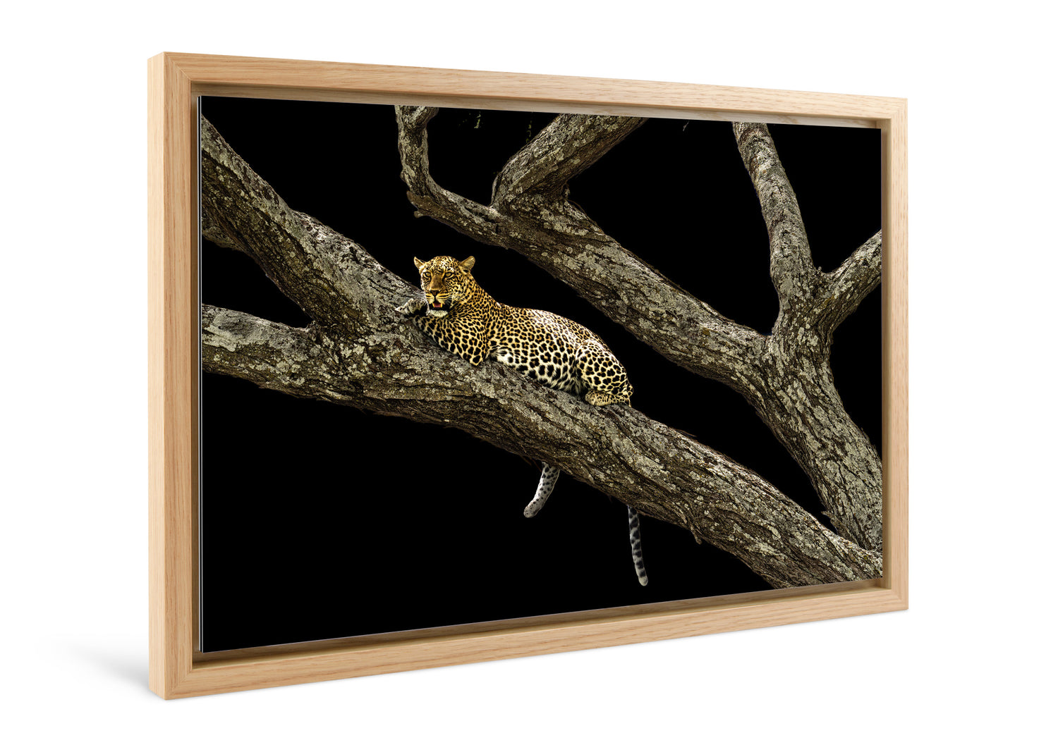 A gap between the image and the solid wood frame creates the impression the picture is levitating