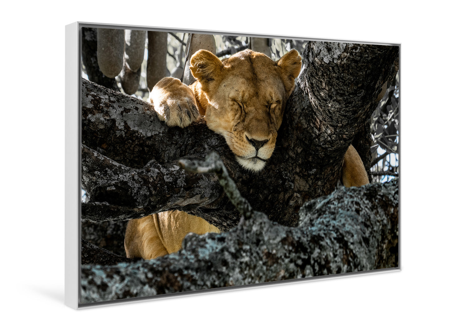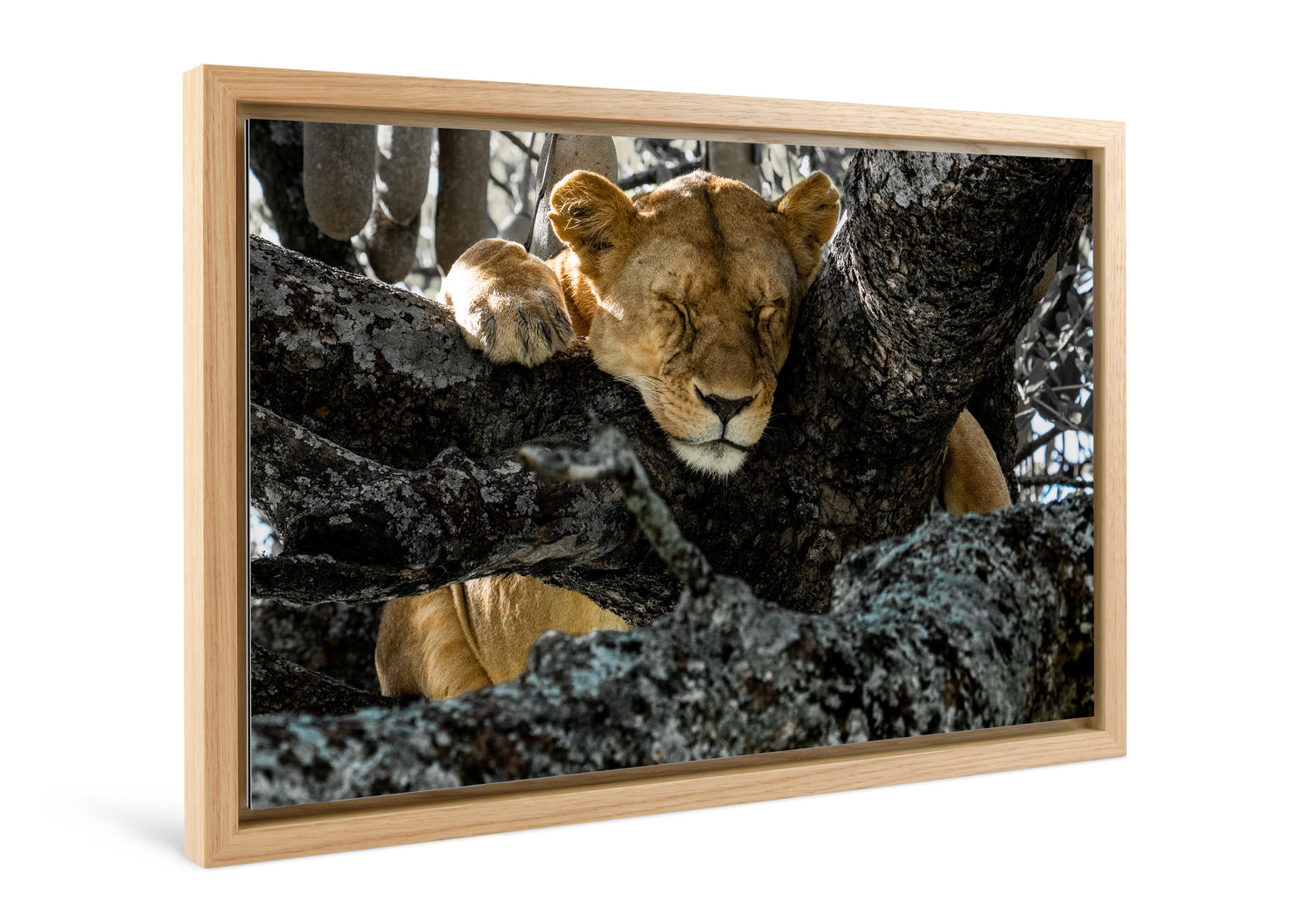 A gap between the image and the solid wood frame creates the impression the picture is levitating