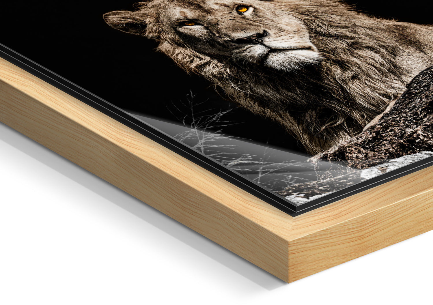 A gap between the image and the solid wood frame creates the impression the picture is levitating