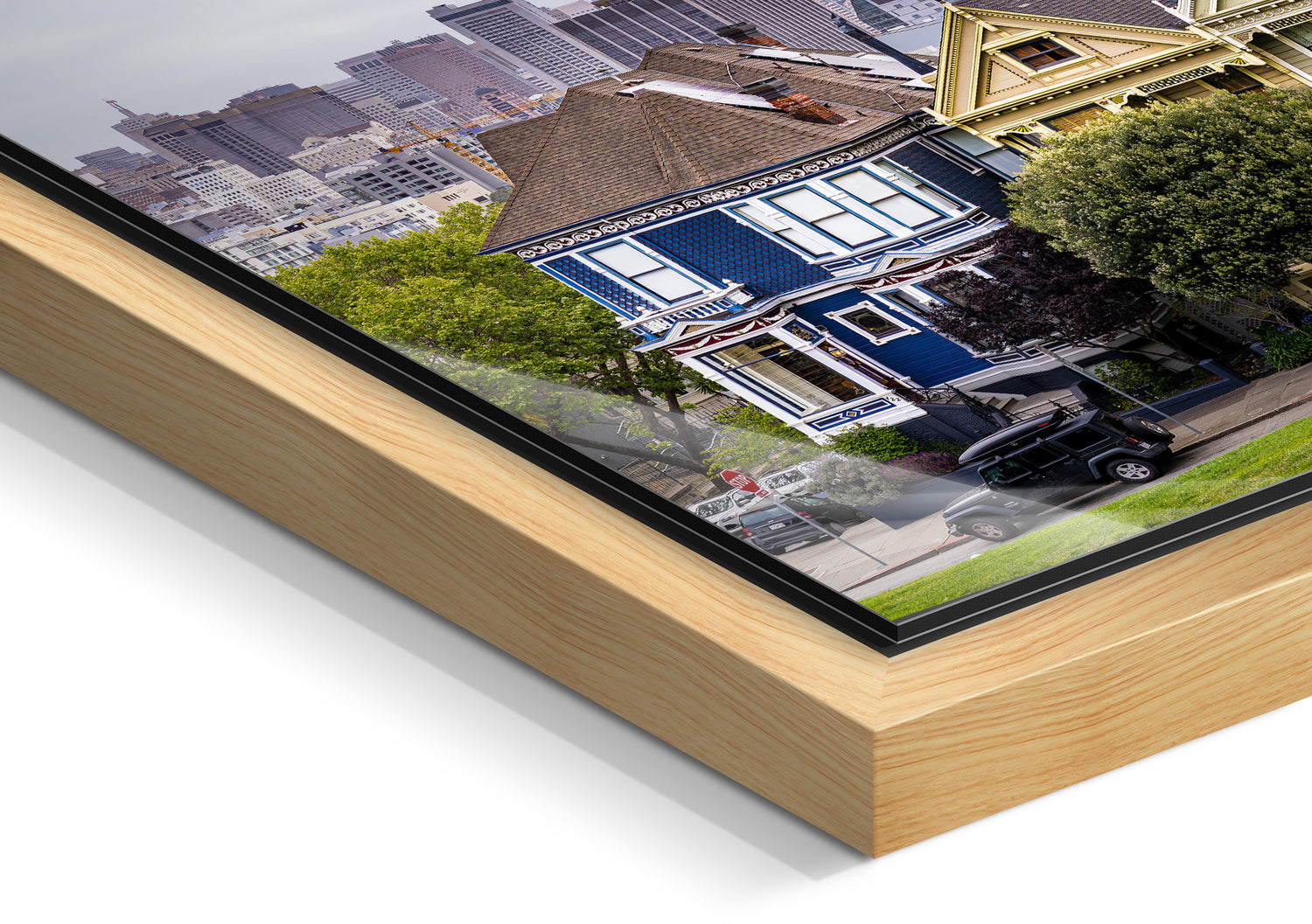 A gap between the image and the solid wood frame creates the impression the picture is levitating