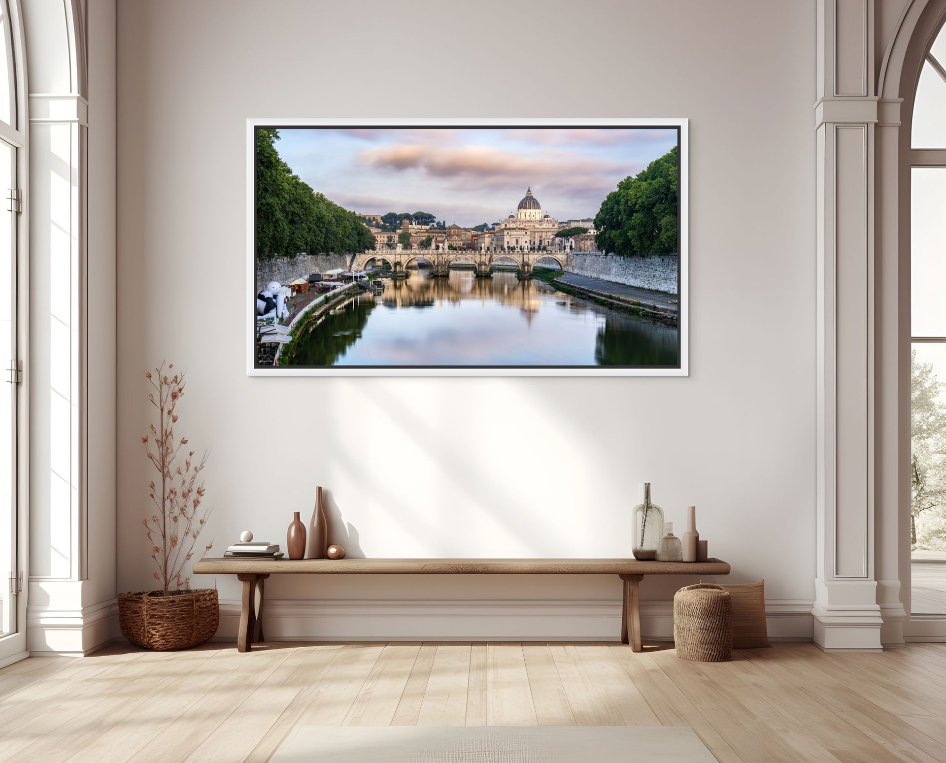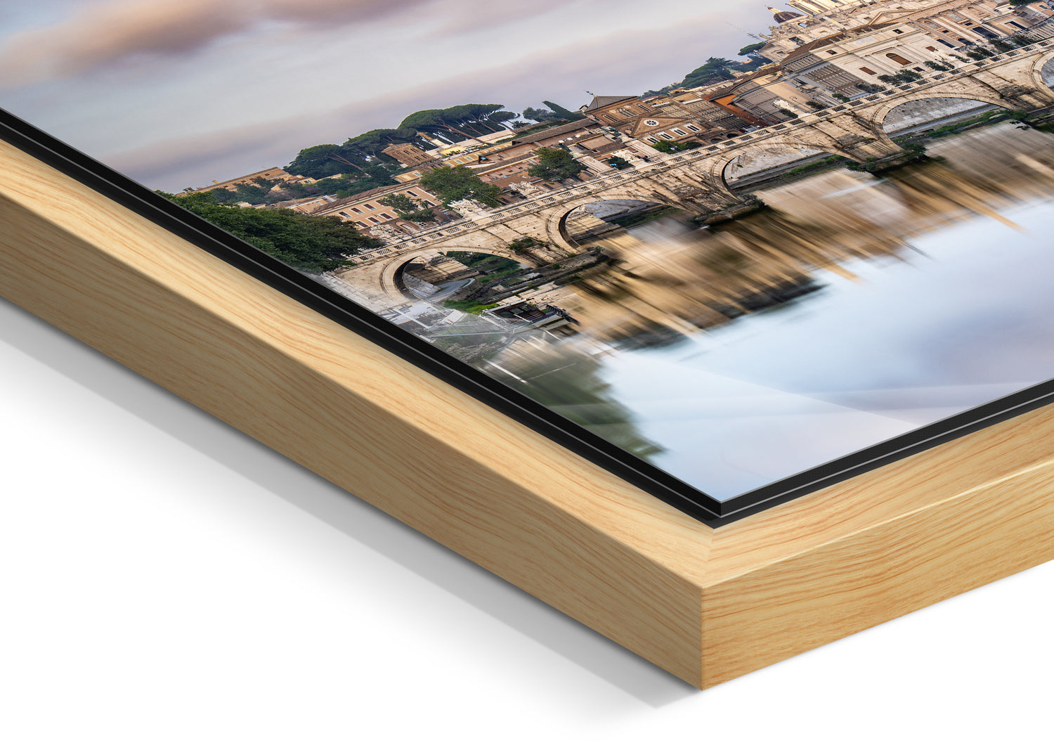 A gap between the image and the solid wood frame creates the impression the picture is levitating