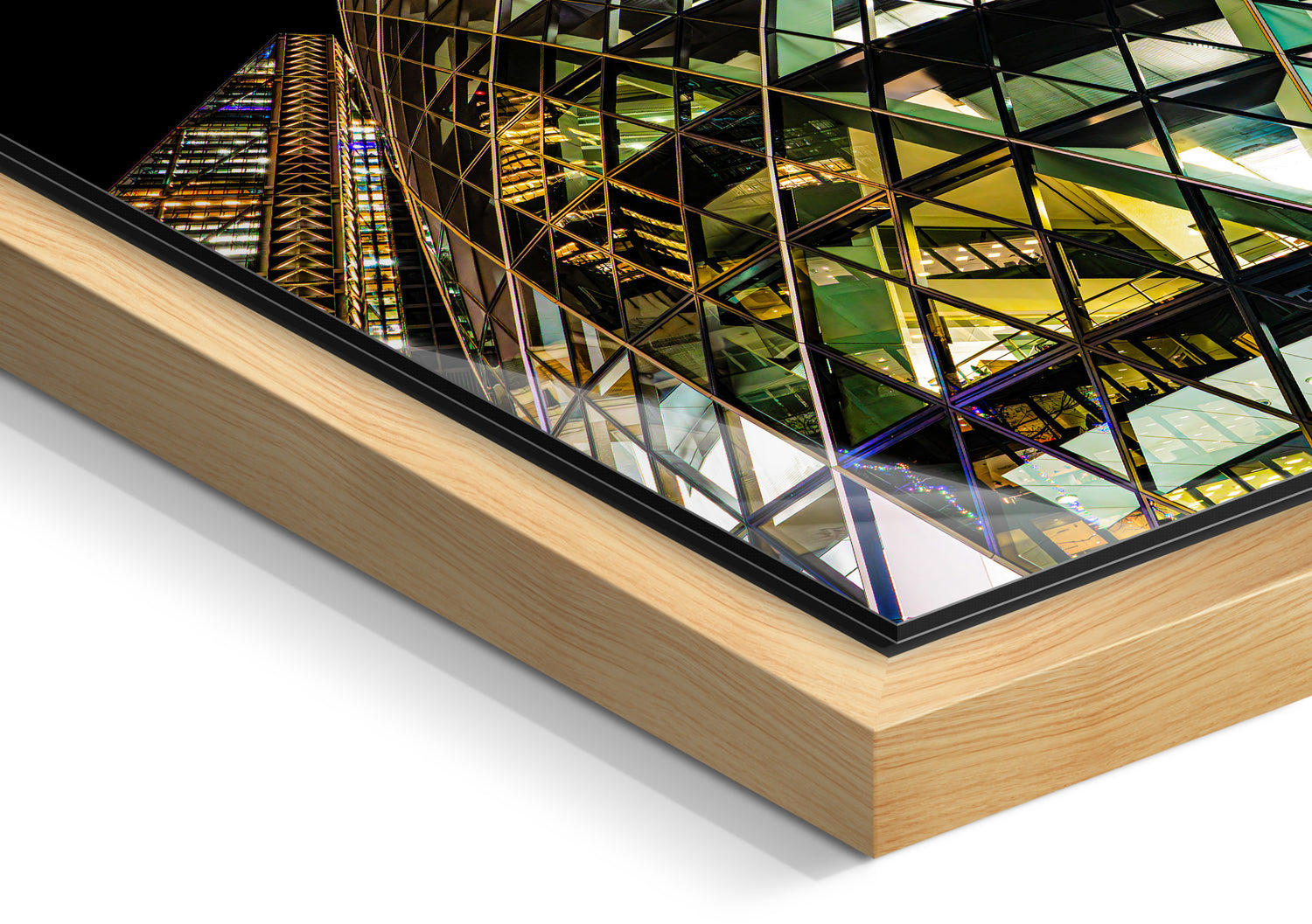 A gap between the image and the solid wood frame creates the impression the picture is levitating