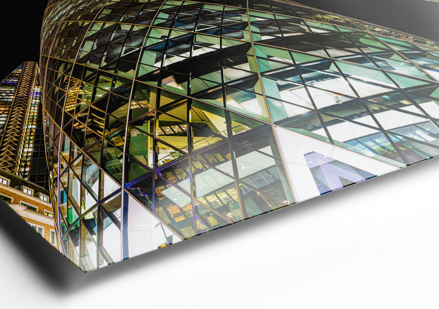 30 St. Mary Axe, also known as The Gherkin in the square mile area of The City of London, is one of my favorite buildings in London.